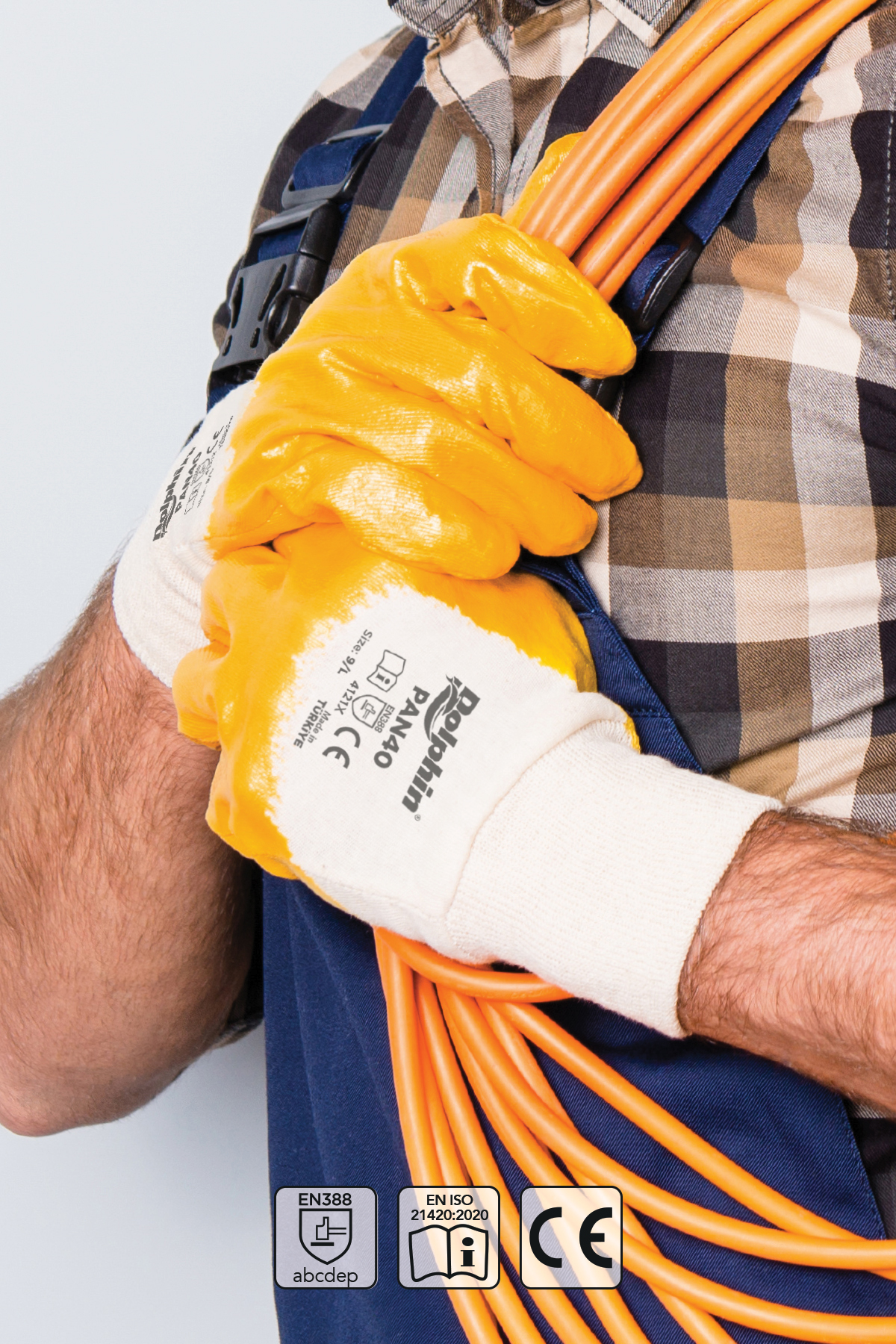 PAN40 PAMUK NİTRİL İS ELDİVENİRenk (Astar/Kaplama)- Beyaz / SarıBeden Seçenegi - 9/L, 10/XLAstar- Pamuk - Polyester ÖrmeKaplama Malzemesi- Sarı Nitril - Avuç içi veparmak üstü (3/4) nitril kaplıBilek Özellig Esnek Örgü BilekliEN388 Performans Degeri- 4121XÖZELLIKLERI 3/4 ü nitril kaplaması ile sıvıların içeri sızması engellenir. Asınmaya karsı uzun süre çok dirençlidir. Özel kalıbı sayesinde eli mükemmel kavrayarak konforlukullanım saglar. Pamuk astarlı dokumasıyla elinizin hava almasını saglar.ÜRÜN DETAYIDolphin PAN40 Pamuk Nitril Is Eldivenleri, insaat, imalat,lojistik, bahçe, tarım, nakliyat ve otomotiv gibi çesitlisektörlerde kullanılan çok yönlü is eldivenleridir. En fazlainsaat sektöründe tercih edilen Dolphin PAN40 Pamuk NitrilIs Eldivenleri, malzeme tasırken, sert nesnelere temasederken koruyuculuk saglar, saglam ve dayanıklı yapısısayesinde elleri yaralanmalardan korur. El üstündeki örgüdokuma sayesinde eller hava alır, terletme yapmaz. Esnekkonç yapısı bilege tam uyum saglar. Dolphin PAN40 PamukNitril Is Eldivenleri esnektir ve asınmaya karsı uzun süre çokdirençlidir. Tüm bu özellikler, insaat isçilerinin güvenli veetkili bir sekilde çalısmasına yardımcı olur.ÜRÜN KULLANIM ALANLARI Makine ve ekipmanlarOtomotivDepolamaPeyzaj ve Bahçe İşleriLojistikİmalat