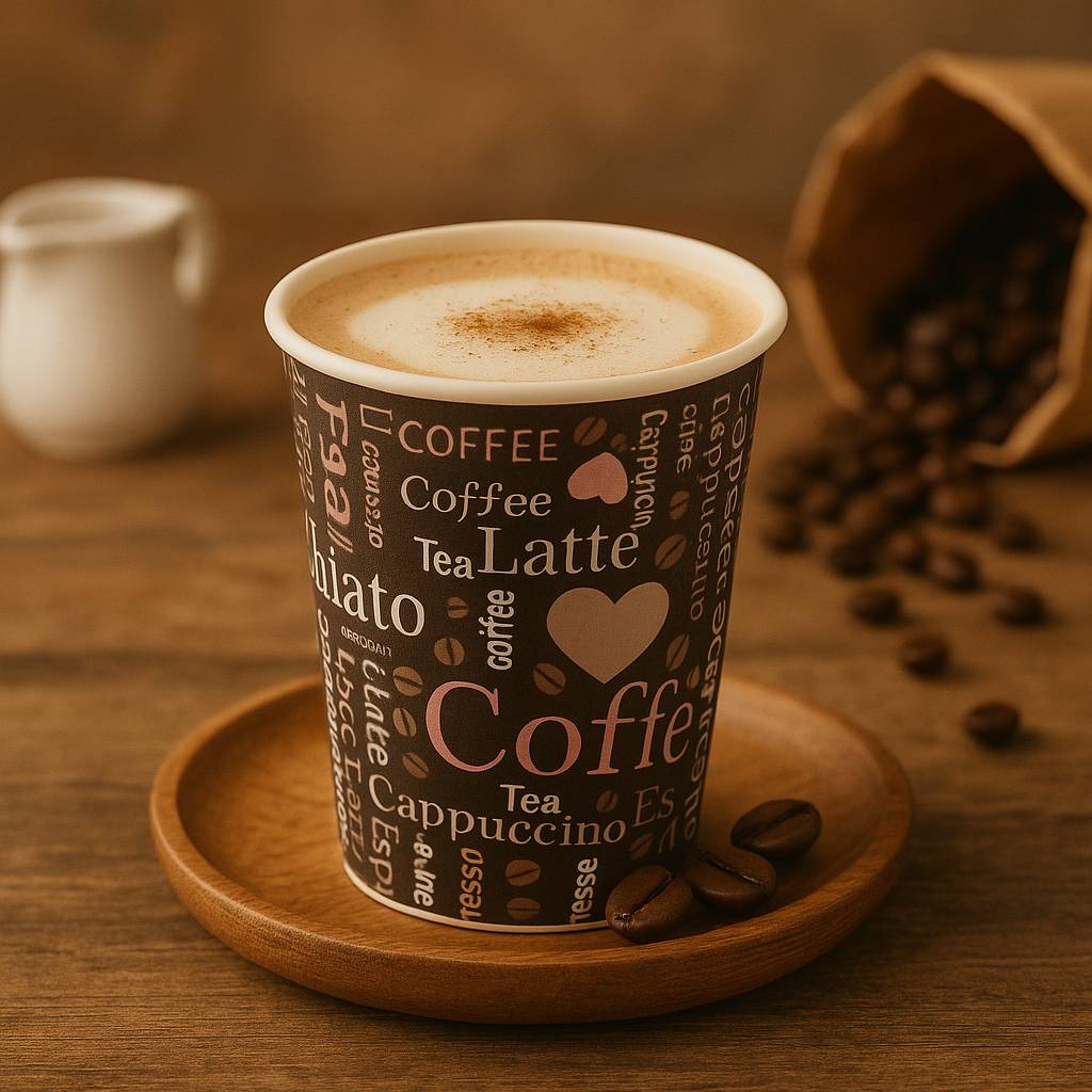 Roll-Up Karton Bardak 7oz Baskılı Kahverengi 25li